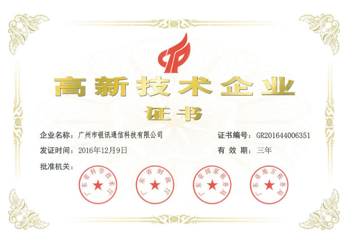 廣州市銀訊通信科技有限公司成立于2002年1月11日, 是一家高新技術企業。 廣州銀訊公司集開發、生產、銷售、服務為一體的通信設備生產廠家。