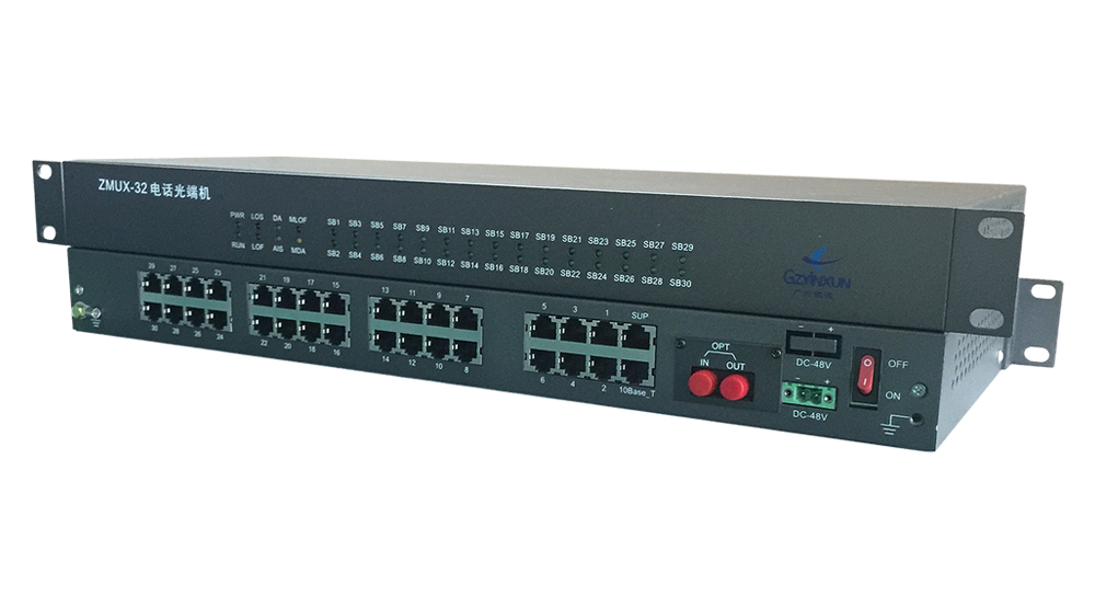 ZMUX-32-30是一款30路電話光端機,主要完成電話、4線音頻(E&M)、RS232、網絡等多業務接入,通過復用到1路光信號傳輸,實現多業務信號點對點通信功能。